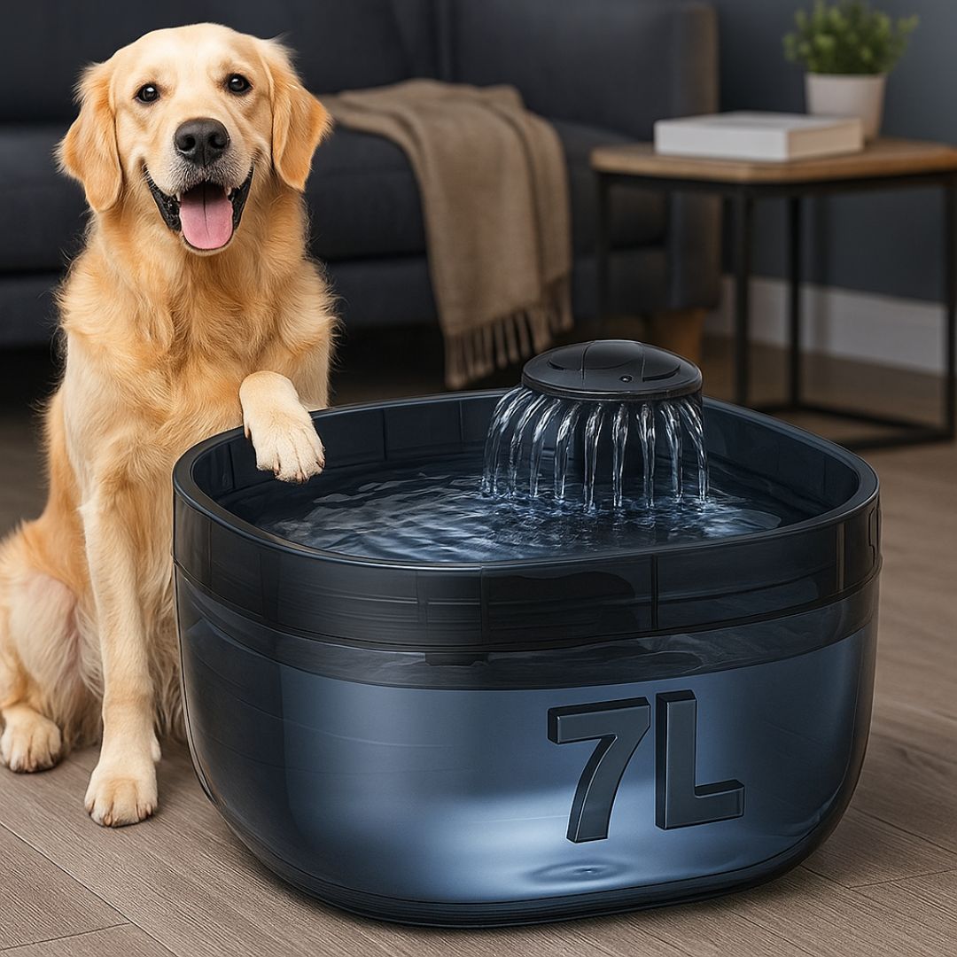 Simply fill the 7L tank with clean water, plug it in, and watch the gentle fountain flow begin. Dogs drink fresh, filtered water all day, automatically!